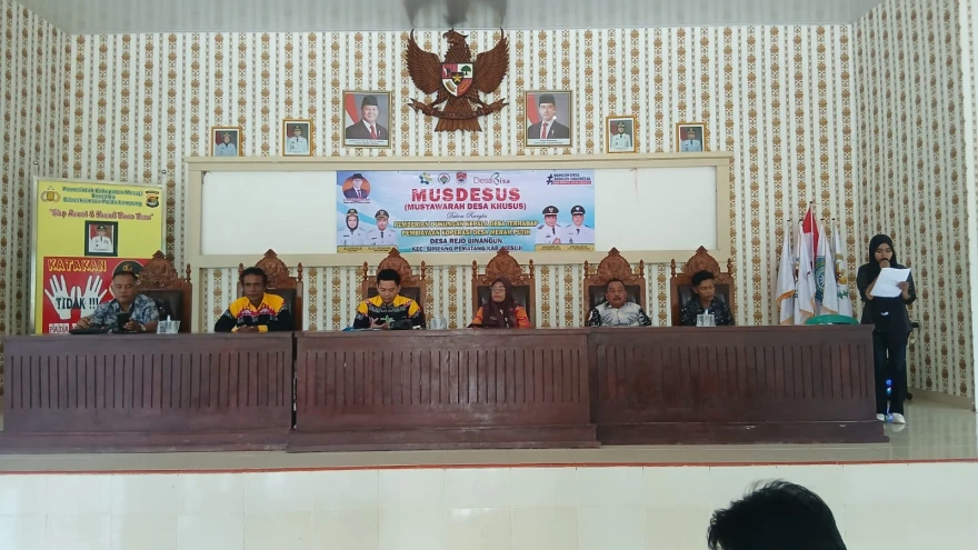 Desa Rejo Binangun menggelar Musyawarah Desa Khusus (Musdesus) Kamis 13 November 2025 terkait penguatan kelembagaan serta pembiayaan Koperasi Merah Putih sebagai salah satu upaya meningkatkan kemandirian ekonomi masyarakat desa. Kegiatan ini berlangsung dengan tertib dan dihadiri oleh berbagai unsur pemerintahan desa, kecamatan, pendamping desa, serta tokoh masyarakat.